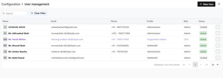 - When a new user is added, the status will automatically be updated as “Invited”.