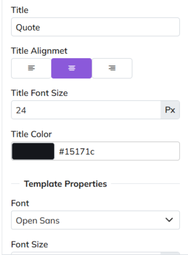 - Major stylistic customizations made in this section, such as font, font size, title color, etc.