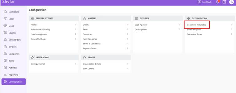 - Under Customization tab, select Document Template