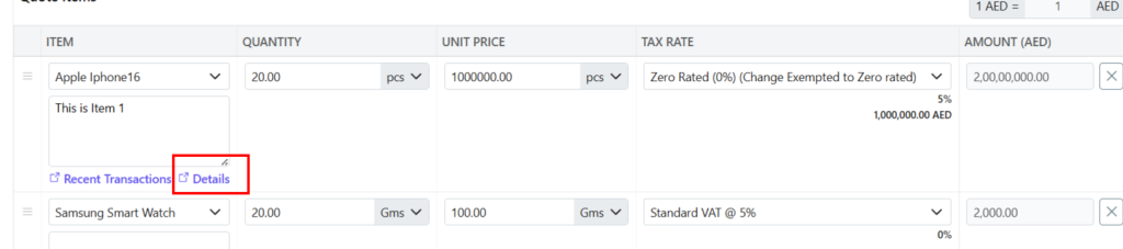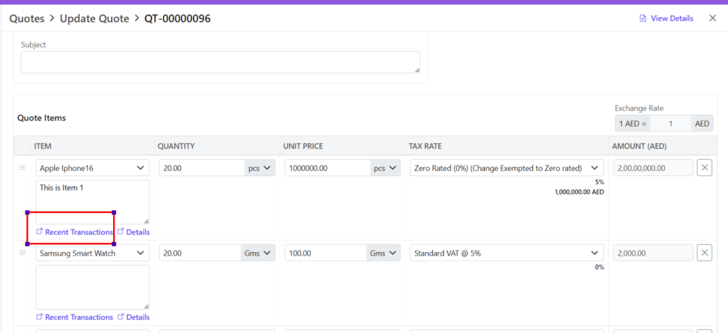 - For new Quote, after adding item Click on Recent Transactions.