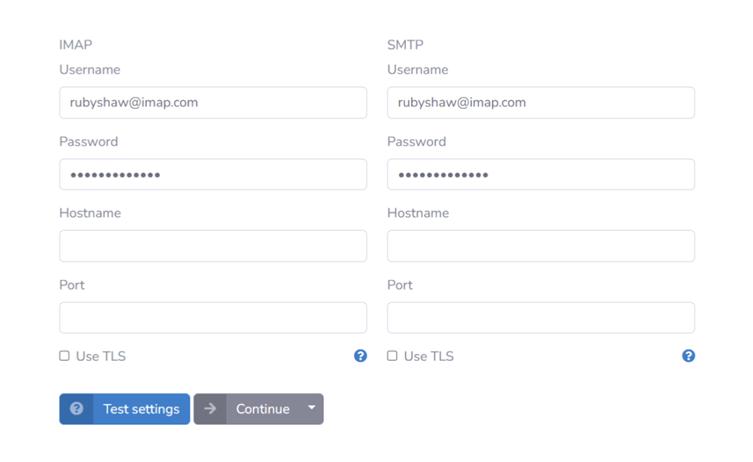 - IMAP host / port: Enter the IMAP server address (e.g., imap.example.com)