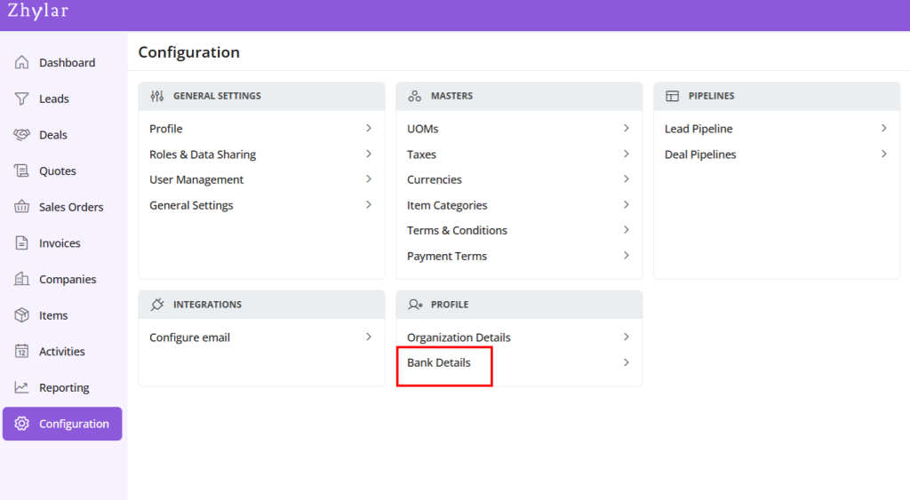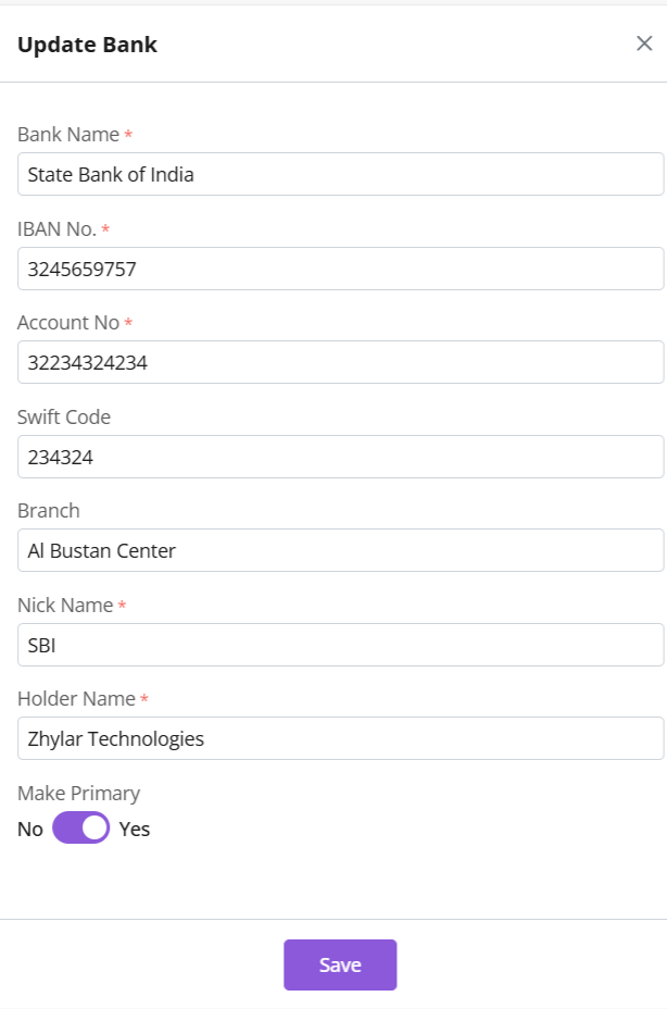 - In Zhylar CRM, a primary bank is the default account managing payments, refunds, and transactions.
