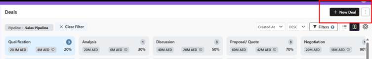 - Click + New Deal (top-right)