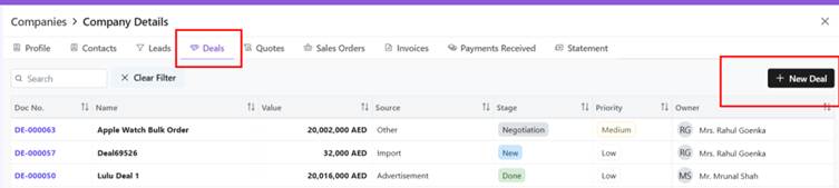 - Click + New Deal