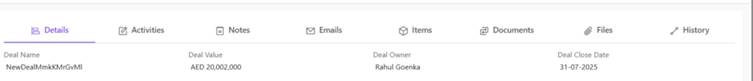 - Files– Any attachments added to the deal
