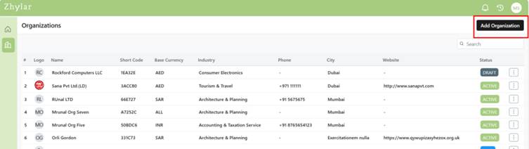 - Click on “Add Organization”.