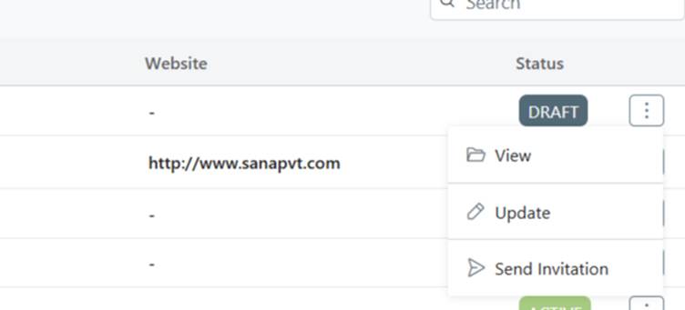 - To send invitation, click on the 3 dots at the of the row.