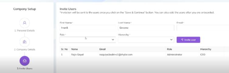 - Invite users- add your teammates and employees to join your organization on the Zhylar platform.