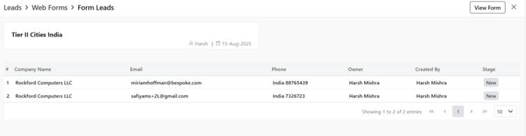 - Form Leads- Click ⋮ 3 dots > Check leads received from particular web form