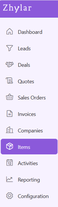 Items are the products or services your company offers, serving as the core components for quotes and sale. In Zhylar CPQ system, they include configurable options, with each item having a unique SKU and pricing.