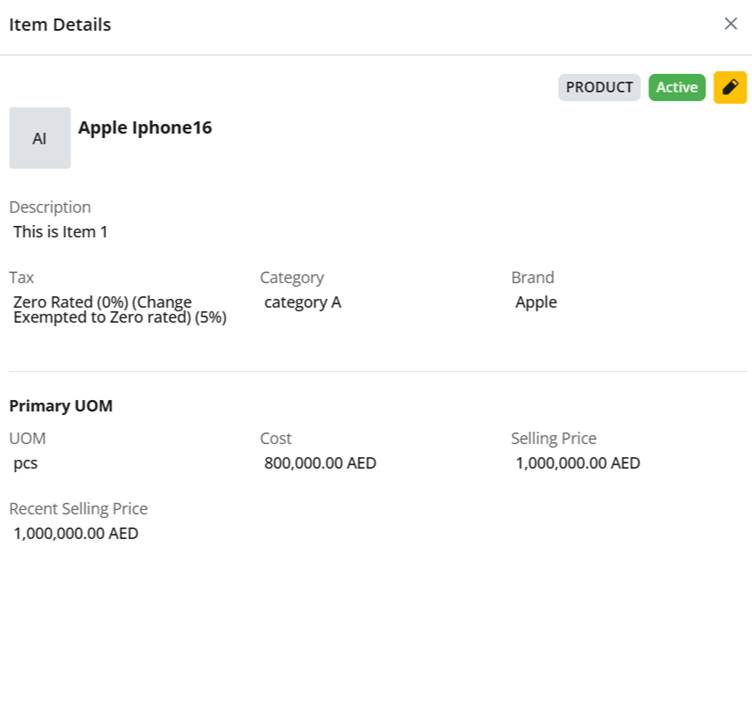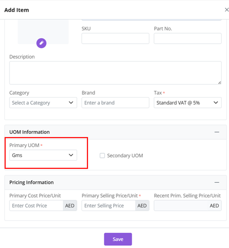 - E.g., a laptop could be sold by the piece (UOM- piece/pc) or in quantity if wholesale (UOM- box/bx)