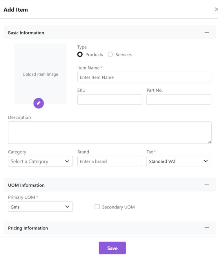 To add items in bulk directly to Zhylar system, refer to the article on Import Items.