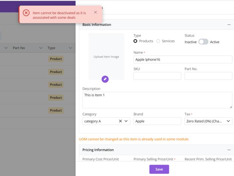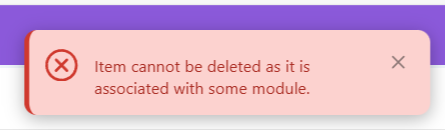 - Ensure the item is not associated with any other module. If so, you will receive an error message.