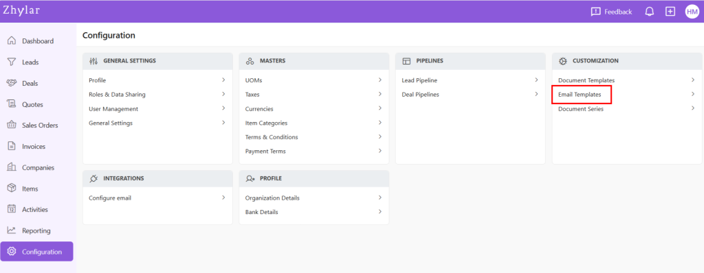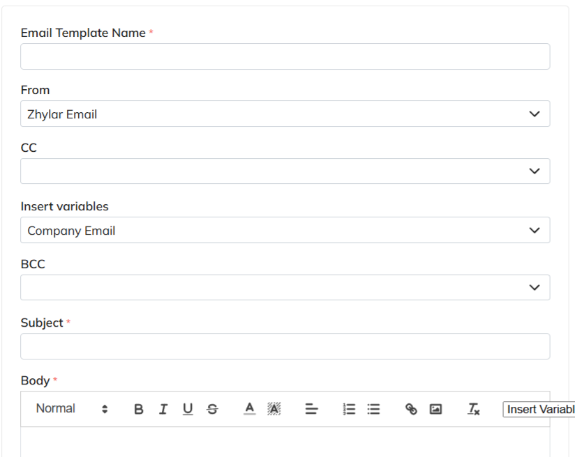 Email templates in Zhylar offer pre-designed formats for quick communication, consistency and ensuring accuracy. These templates can be customized for brand alignment.