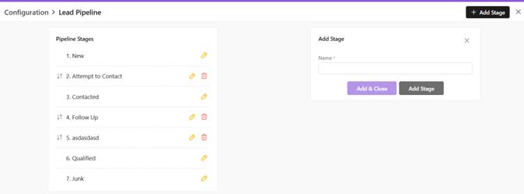 - Update the stage name or click on the two-way faced arrows to shuffle stage positioning.