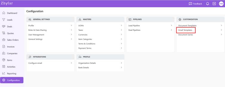 Email templates in Zhylar offer pre-designed formats for quick communication, consistency and ensuring accuracy. These templates can be customized for brand alignment.
